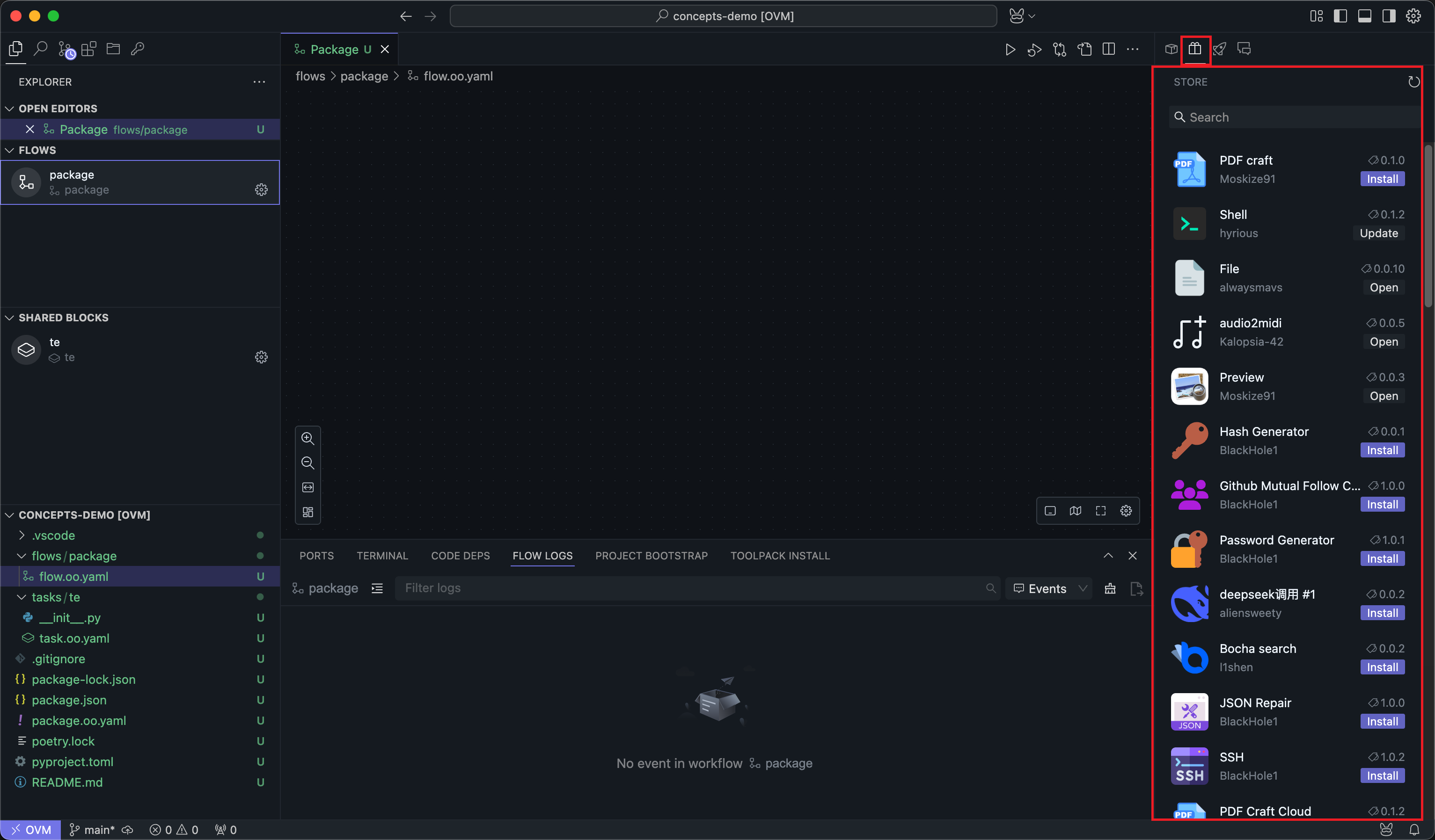 Or you can search for packages that meet your needs on the community page of the homepage. Packages opened this way can directly use the contained Flows: