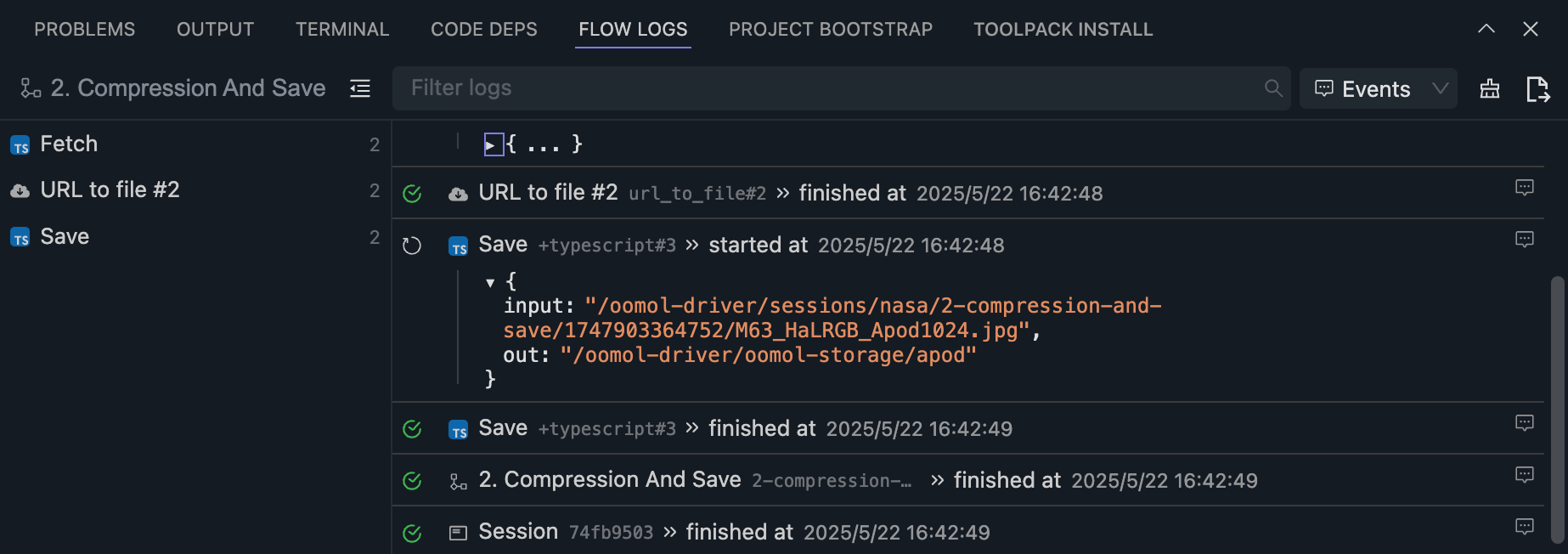 This area will display some log information from OOMOL Studio itself and output logs from plugins. Generally, you do not need to pay attention to this area.