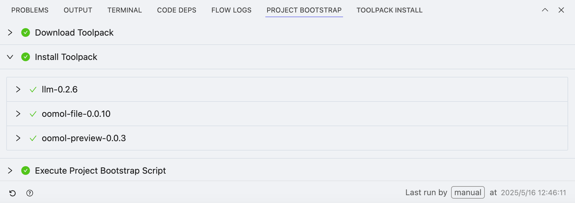 When you import a new project, OOMOL Studio will automatically initialize the project, including: