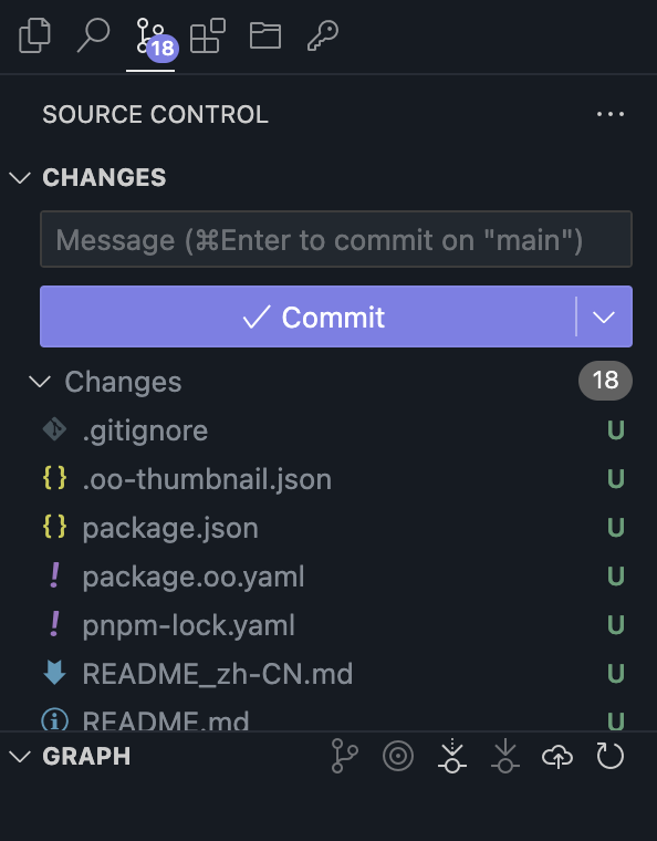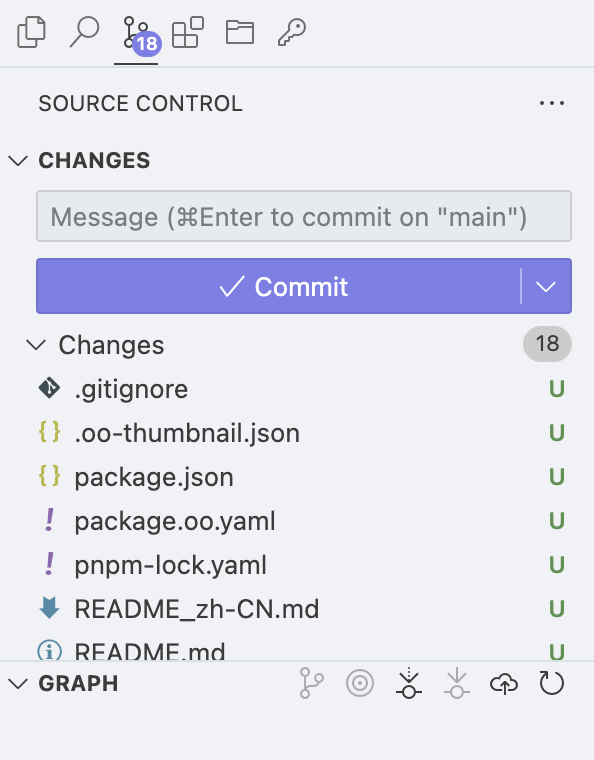 It is important to note that the git status may not always be timely; if you leave OOMOL Studio to modify the project's files (add, delete, rename, etc.), the git status will not be updated. You can manually refresh by clicking the refresh button in the upper left corner.