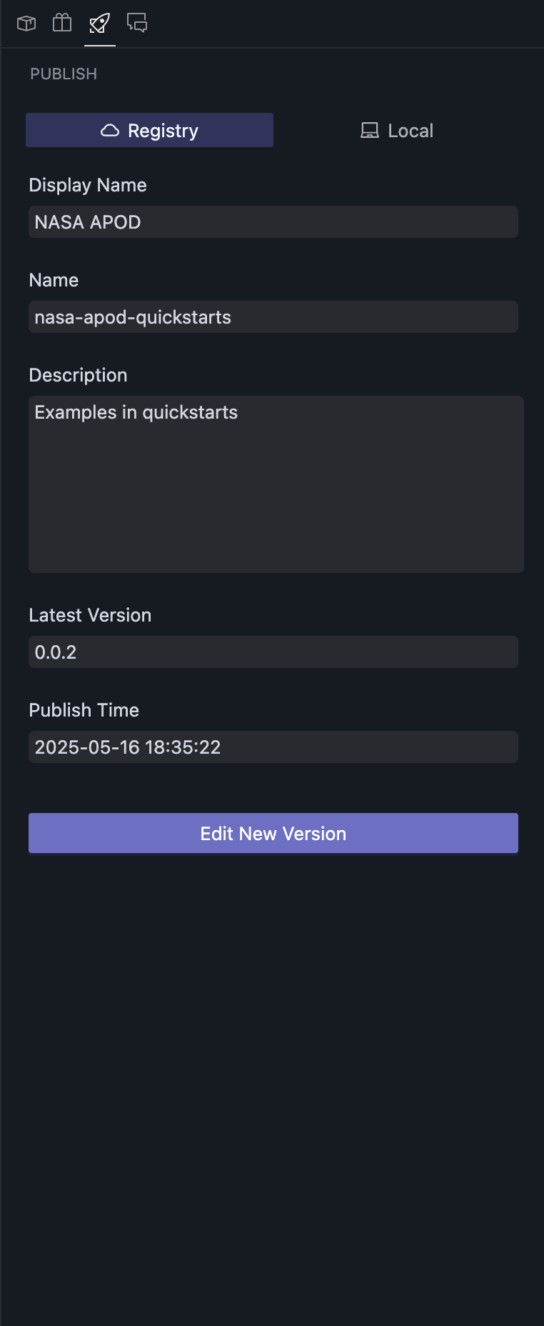 You can view all extensions for the current project in this tab, and you can also click the button in the upper right corner to install local extensions.