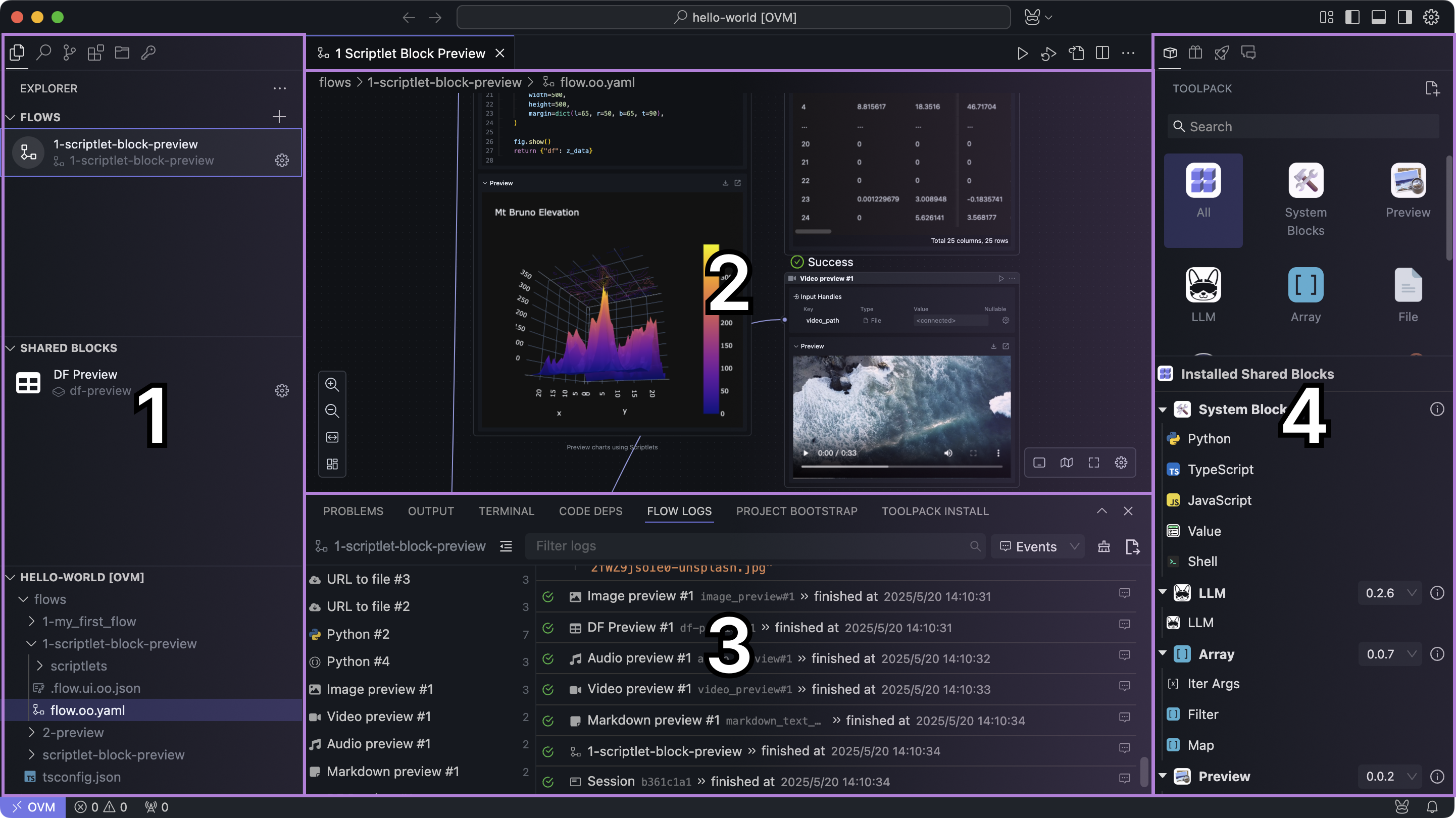 This area will display some log information from OOMOL Studio itself and output logs from plugins. Generally, you do not need to pay attention to this area.